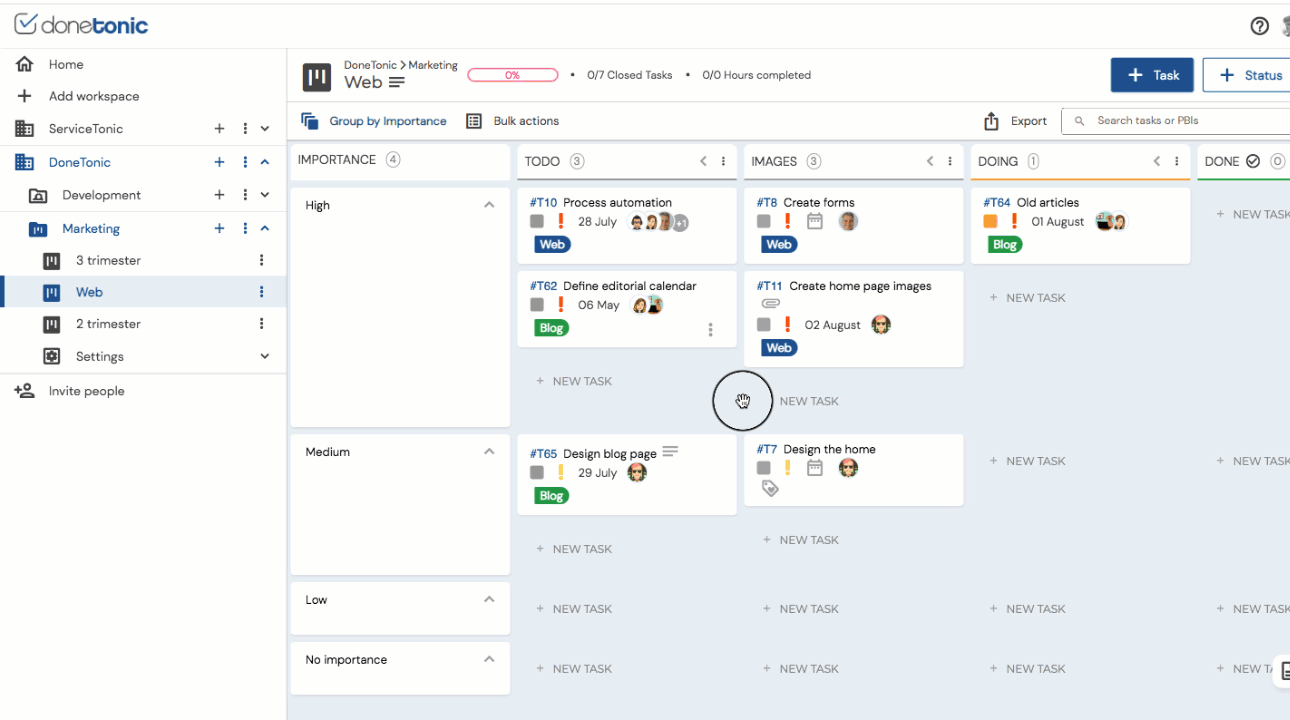 Organize the tasks of your projects and facilitate collaboration among team members, regardless of their geographic location. Keep track of task statuses, receive feedback, attach files to each task, and know delivery dates for project progress.